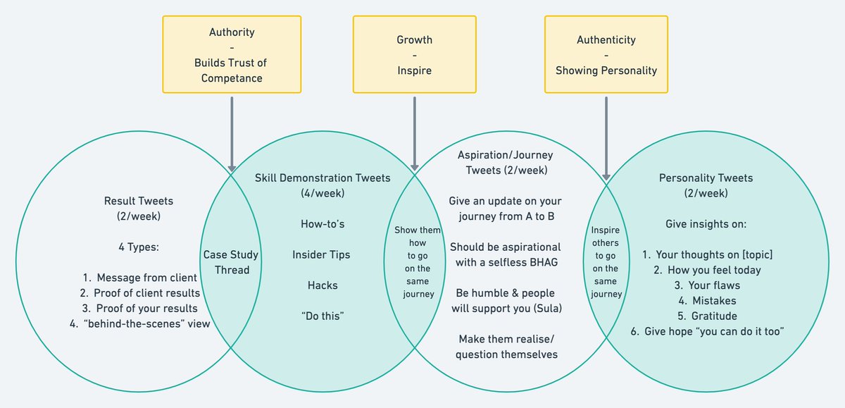Here's the 4 types of tweets I use to build authority for my clients (fast):