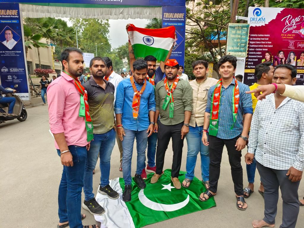 पाकिस्तानचा झेंडा विश्वशांती या गोंडस नावाखाली MIT प्रशासनाकडुन कोथरूड मधील कॅम्पस मध्ये लावला होता. माहीती मिळताच अध्यक्ष @DushyantMohol यांच्या नेतृत्वाखाली