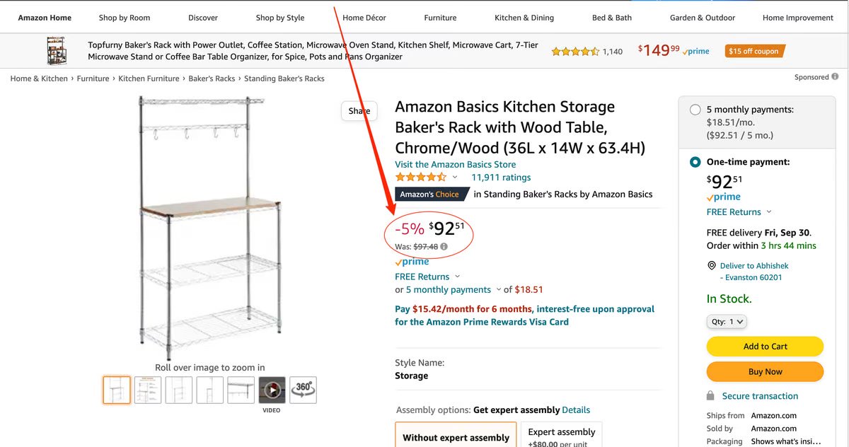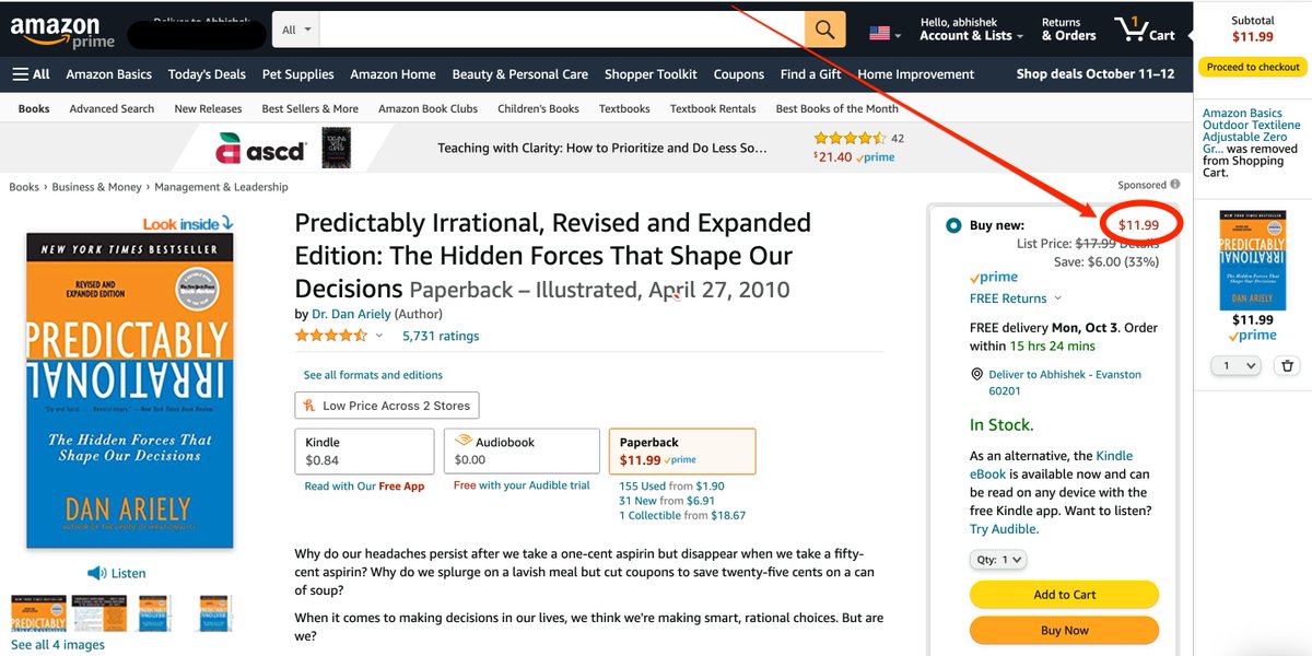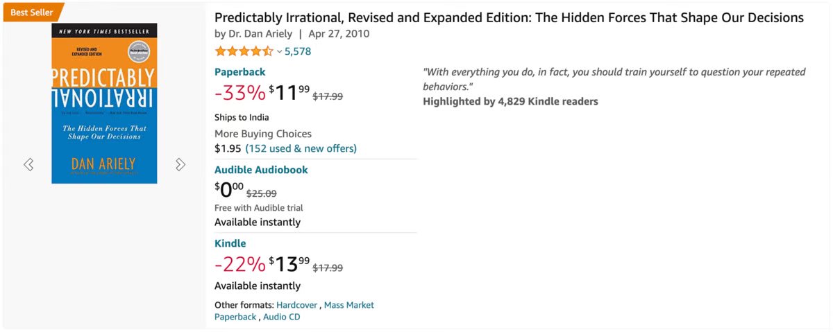 Amazon smartly places unrelated lower prices and terms like "Free" right below the selling price.