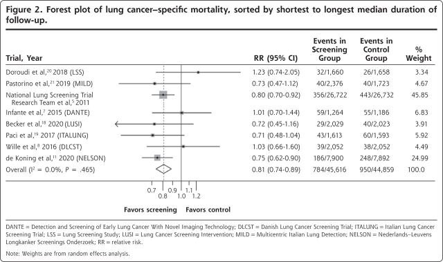 In particular, the NLST (2011) & NELSON (2020) trials found reduced lung cancer mortality with low dose CT screening.