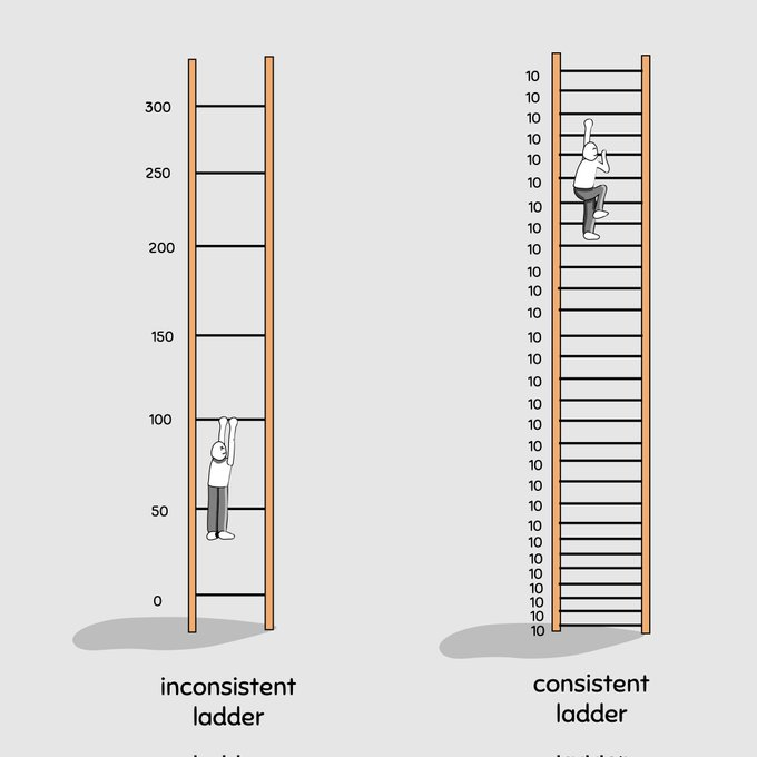 1. Concentrate on forming habits by taking small steps forward everyday.