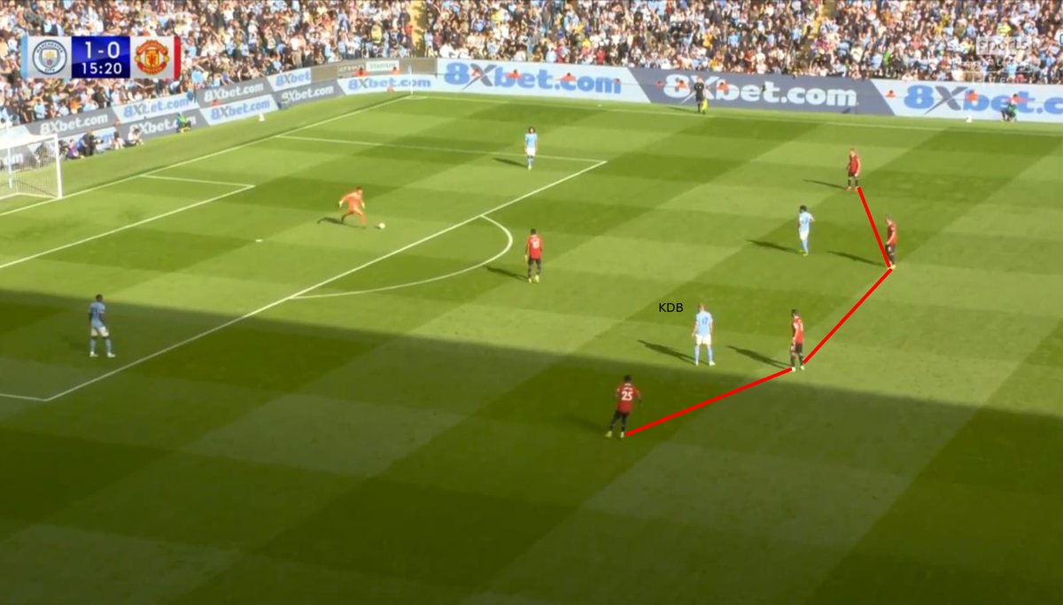 An incredible first half display killed United. Pep positioning the FBs wide might have surprised ETH, but United were also forceful on the ball, often looking to pick out Rashford's runs.