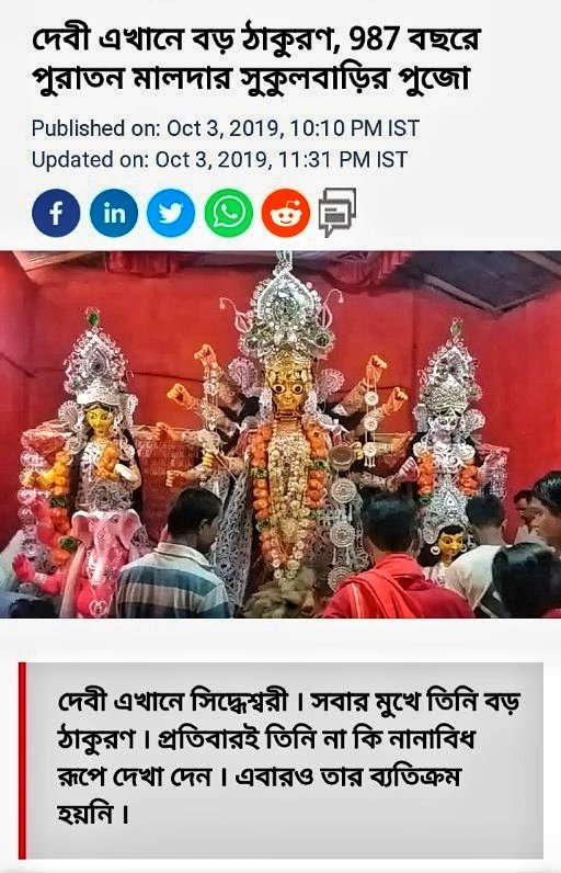 9) Mrinmoyee Durga, kuladevi of Mallabhoom, established by the 19th Monarch Maharaja Jagat Malla at 997 AD (1025 years old), Bankura. 3 Cannon shots are blasted in her honour. 9/n