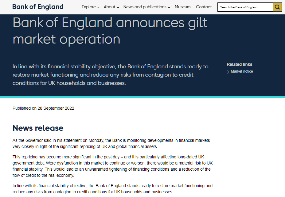 "BoE’s Financial Policy Committee noted the RISKS to UK financial stability from dysfunction in the gilt market. It recommended that ACTION BE TAKEN, and welcomed the Bank’s plans for temporary and targeted purchases in the gilt market at an URGENT PACE."