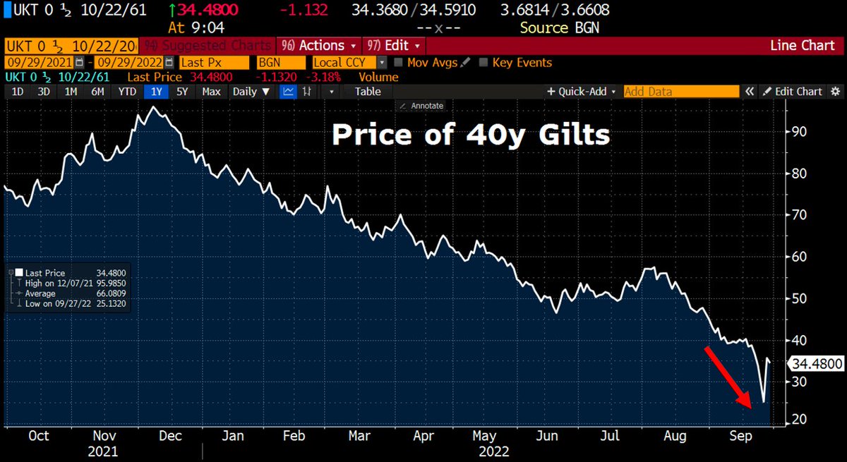 🚩 Resulta que numerosos Fondos de Pensiones (FP), con carteras 80% RV - 20% RF Gilts, habían estado apalancándose por hasta x5 con respecto a sus posiciones de RF, pensando que eran "inversiones estables"