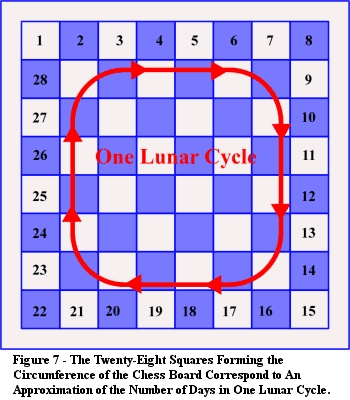 "..the duodenary of the Zodiac and the 28 Lunar mansions; furthermore, the number 64, the sum of the squares on the chess-board is a submultiple of the fundamental cyclic number 25920, which measures the precession of the equinoxes."