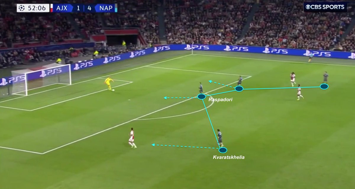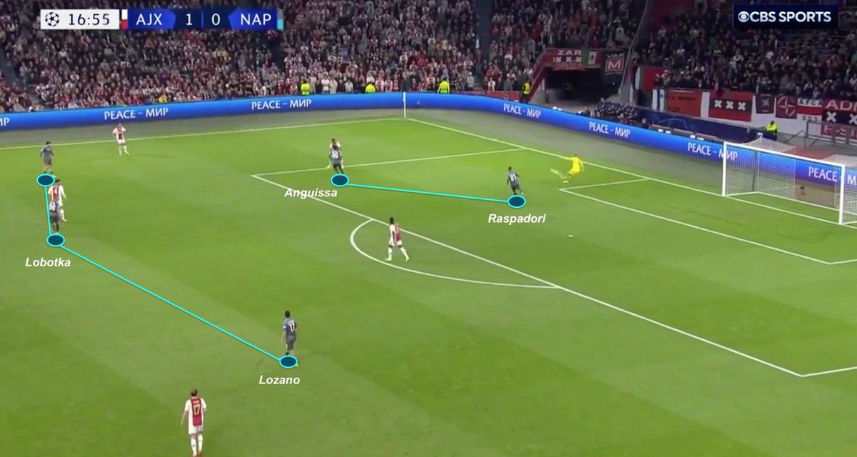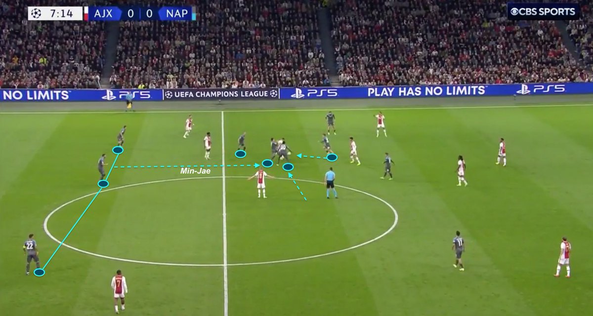 🔍 TACTICAL ANALYSIS : 🔵SSC Napoli - ⚪️🔴Ajax Amsterdam How did Napoli, thanks to its pressing structure, took advantage from Ajax’s long balls and wide build-up to attack central spaces ? 🧵