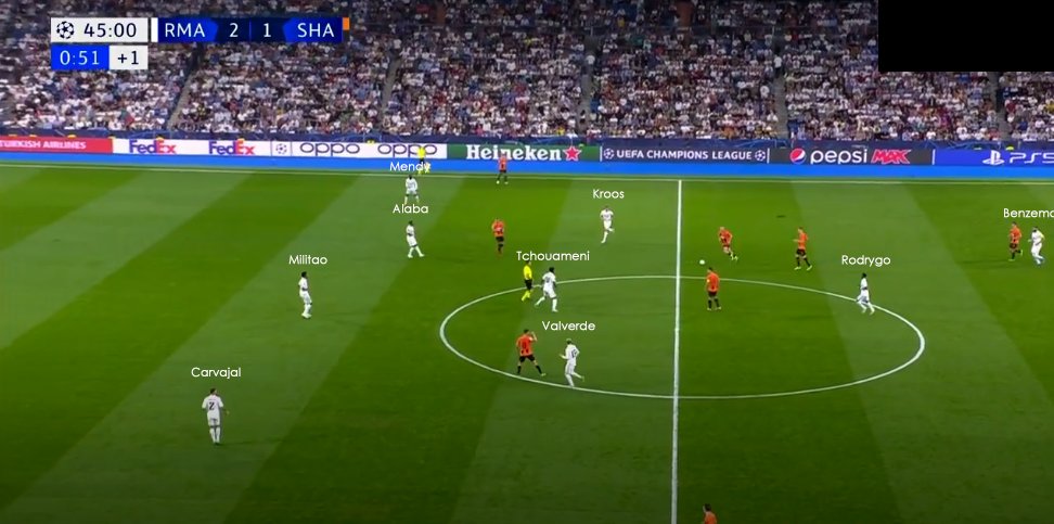 Fede Valverde is absolutely crucial to the way Carlo Ancelotti wants his team to press/defend because he can take up multiple duties/roles off-the-ball and also allows the team to morph into different shapes/structures due to his positional sense, commitment and work ethic.