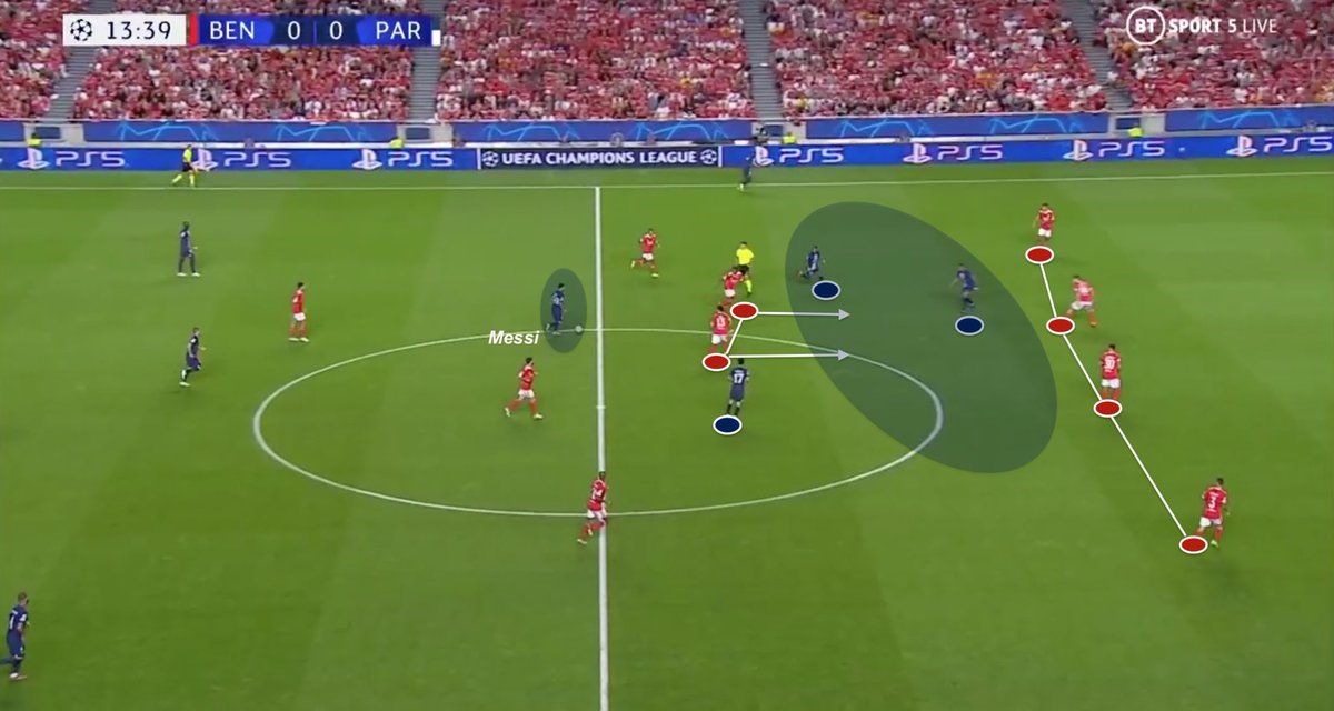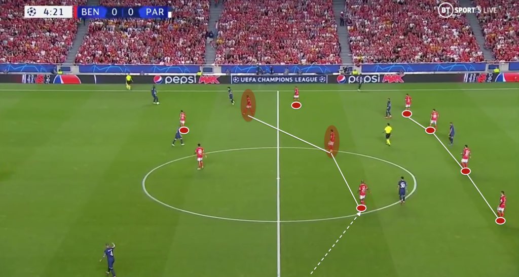 Benfica’s 4-4-2 in mid third allowed them to manage PSG width due to their physical condition to manage switches of play (on the contrary to Lyon for instance).