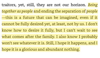 She then goes on a side quest/apologia to make sure we understand that, that POC family dysfunction is _simultaneously_ the fault of the white/capitalist/colonialists and a brave FU to the oppressive system. Nonetheless, brown families have to go as well. 5/