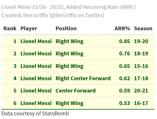 But, I think we do see the use of ARR again here, even if there are outstanding questions... Messi is, naturally, the best ARR passer of this 6-year span.