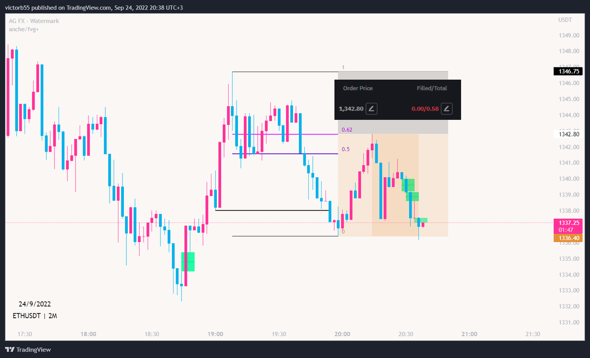 OB, Breaker, FVG eq, 0.62 fib retracement, wick retest