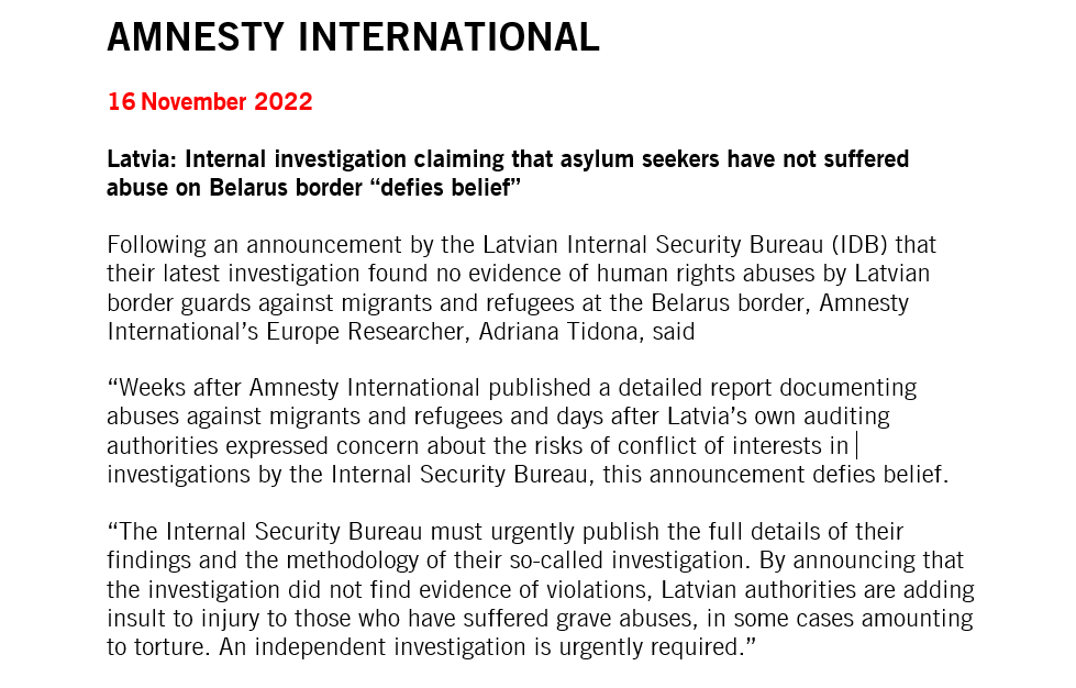 the announcement that an internal investigation has found no evidence of human rights abuses by Latvian border guards at the Belarus border defies belief.
