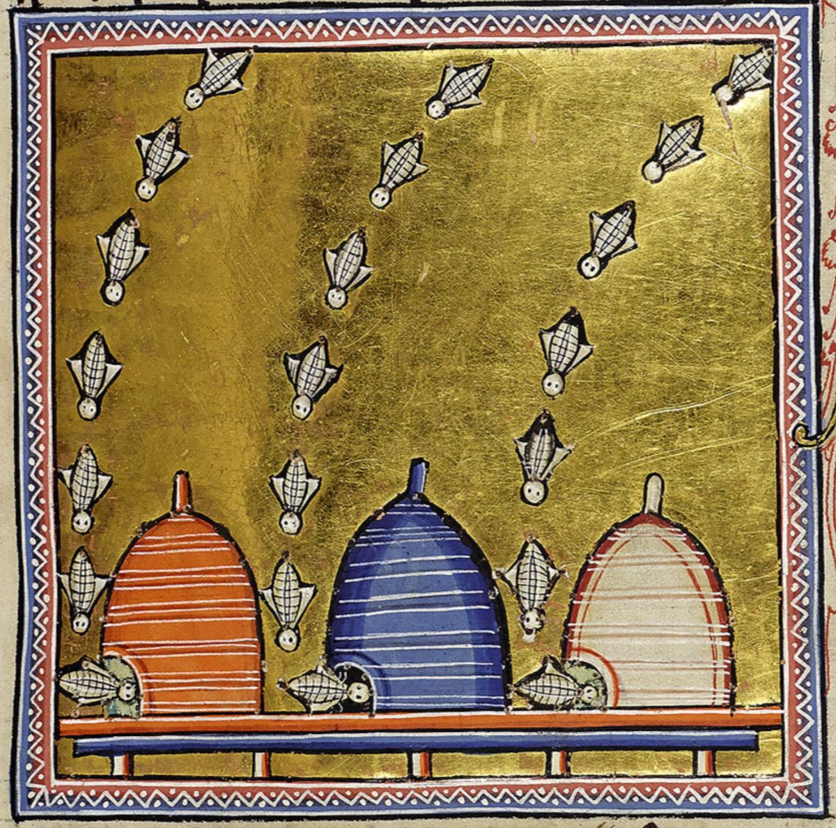 this is bc allegedly, when ambrose was an infant a swarm of bees landed on his face.