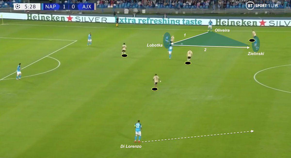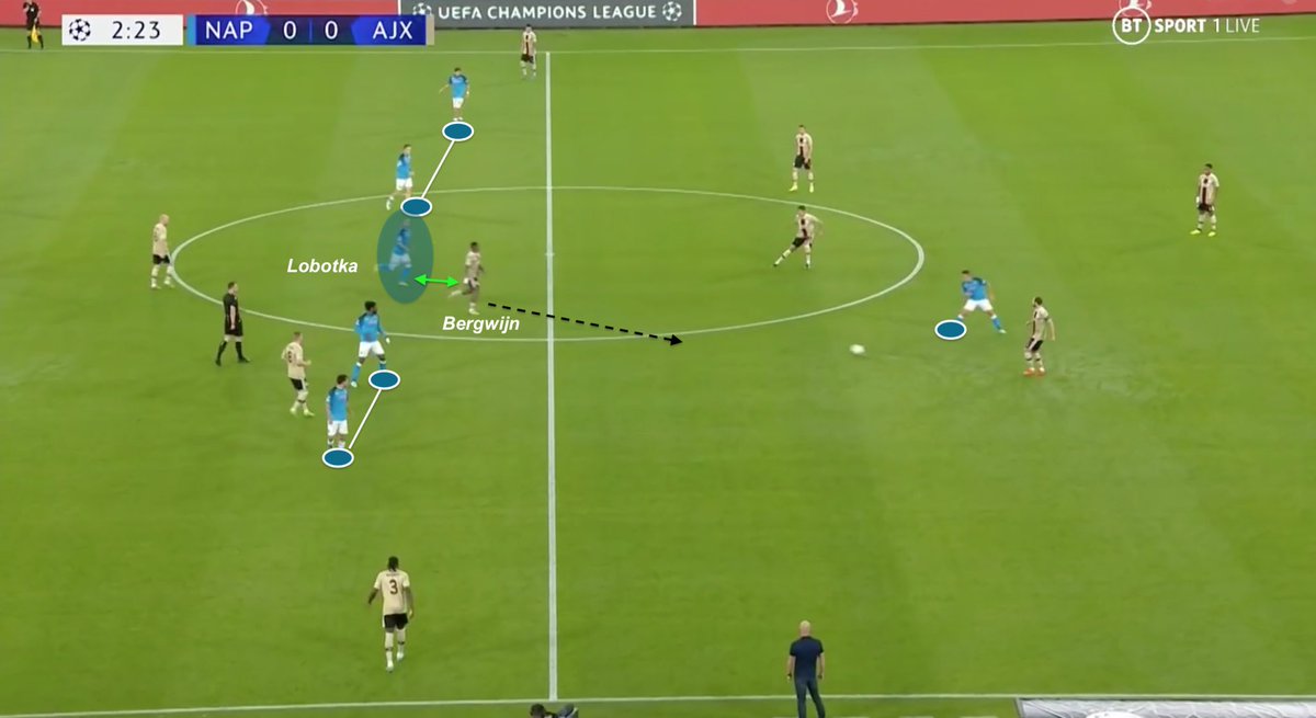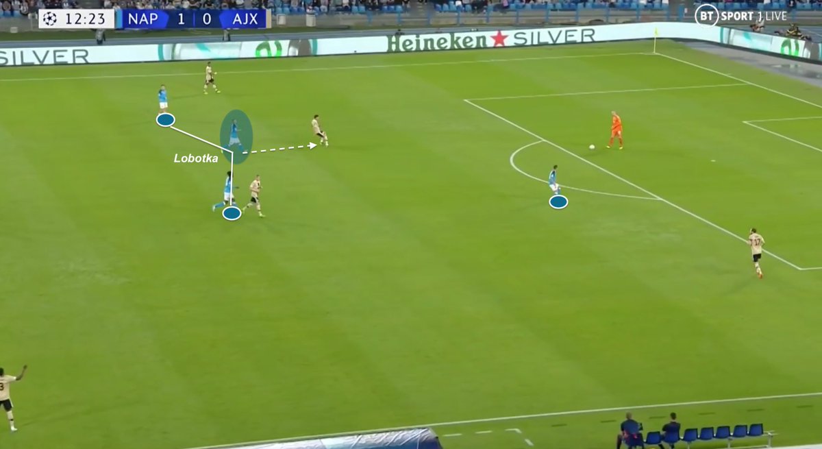 🔵Player tactical analysis 🇸🇰 In which way Stanislav Lobotka has a fundamental role in controlling Napoli’s midfield, in and out of possession ? Example vs Ajax Amsterdam 🧵