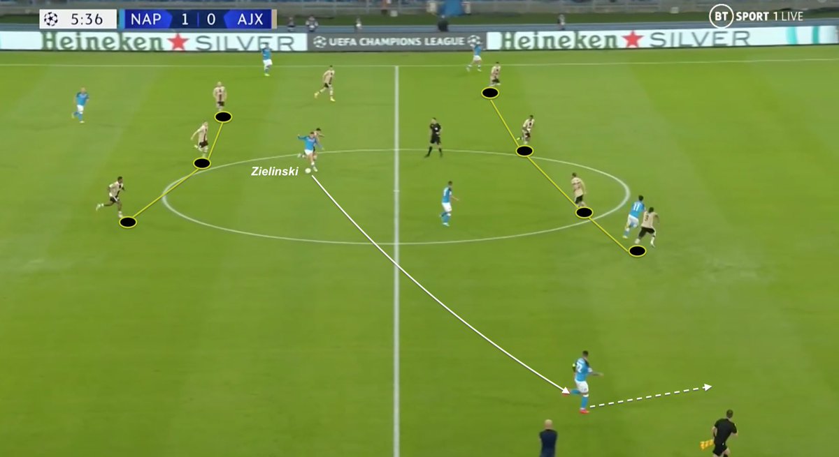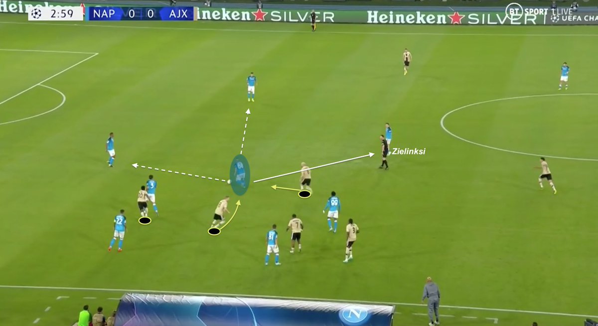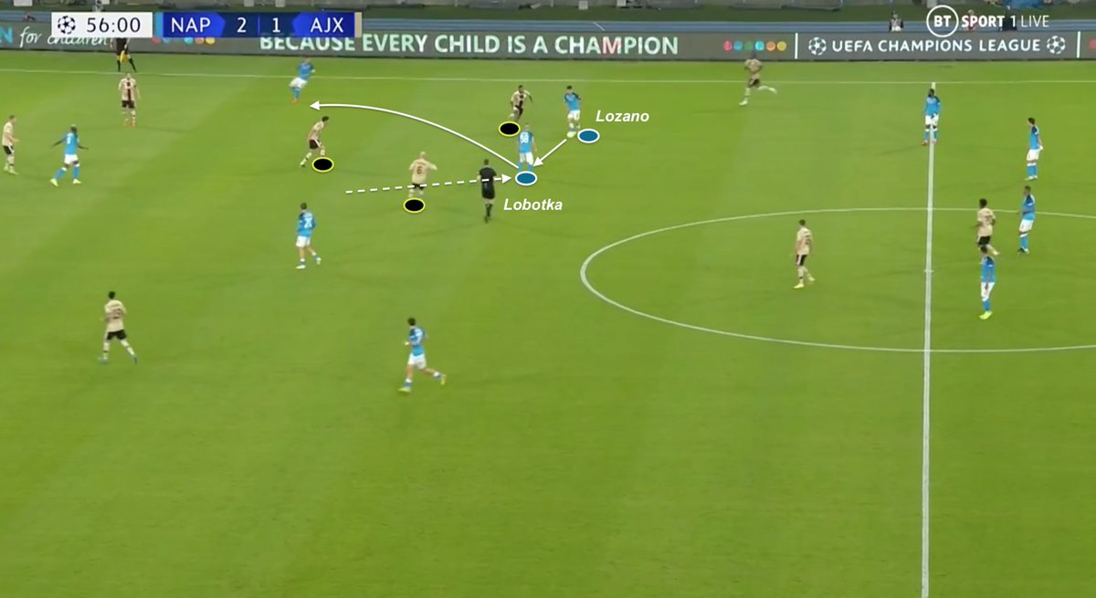 Even if Lobotka does not receive the ball, he constantly had to move between 3 Ajax players to offer the best pass option for ball carrier. That discipline is why Napoli has so much pass option. Everyone moves in ideal positions to receive, as risky as it could be.