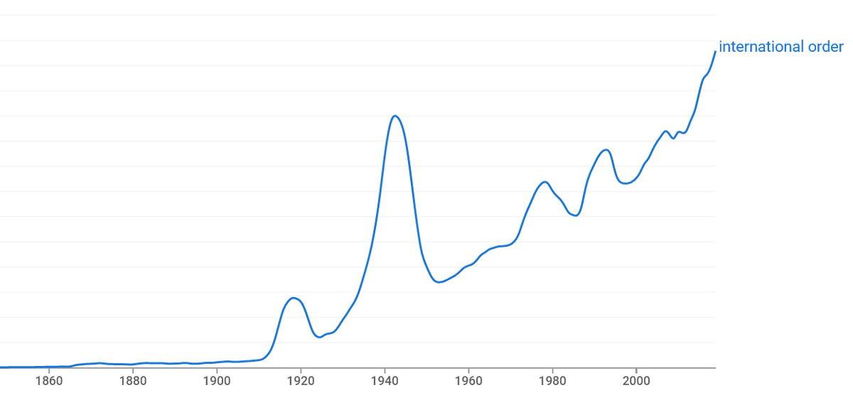 Consider the below NGram for "international order". Though the phrase appears in the early 20th century, its usage takes off during an obvious time: World War I.