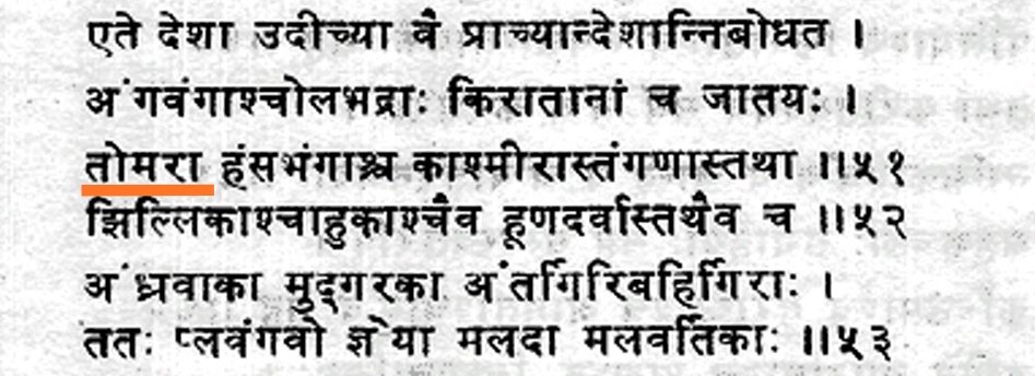 Tomar clan of Rajputs is quite an old one, see below mention of Tomaras in Itihasa-Purana texts.