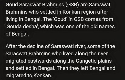 There are multiple accounts as to why GSBs left Bengal and migrated thousands of kilometres away to Konkan. The migration to Konkan did not occur in a single phase but was spread over hundreds of years.