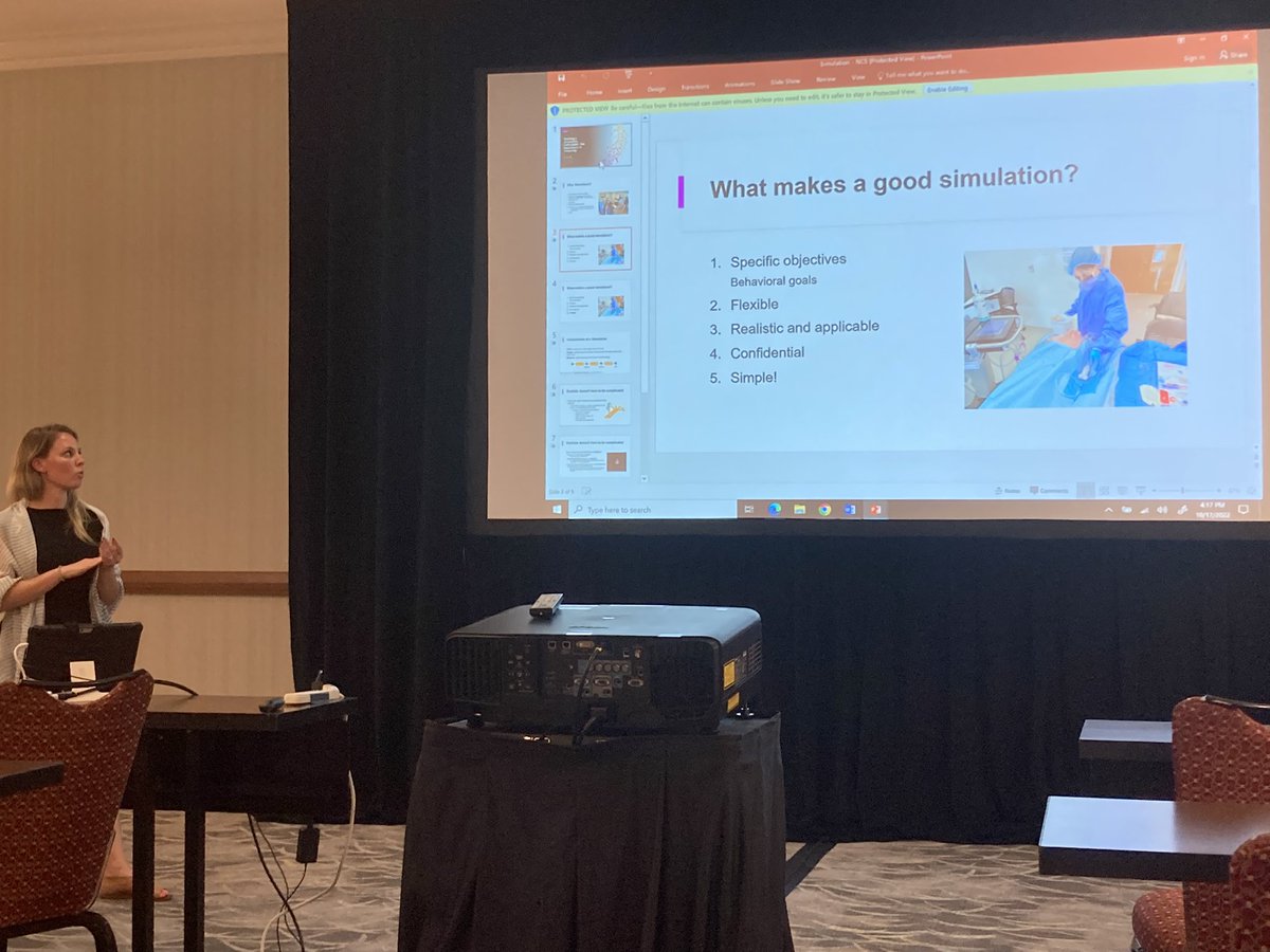 Next: #jennaford speaking about the value of making simulation #simple!! Having a great sim means having: