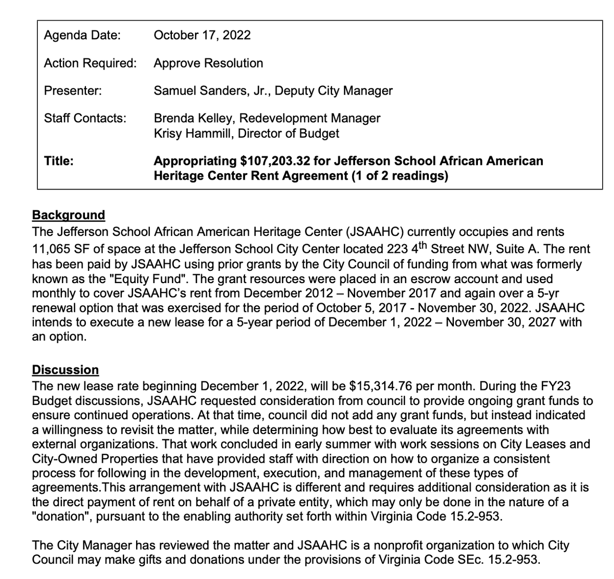 i'm not sure why this got pulled last month, but the jefferson school's rental assistance is up for a vote now