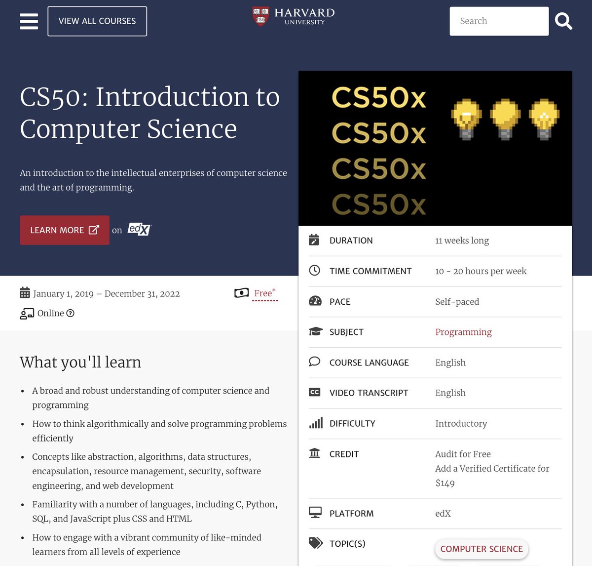 You'll learn about all the fundamental concepts and prominent languages to get started in tech.