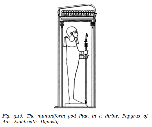 It is significant that Ptah is usually represented as a mummiform god, like Osiris, with whom he eventually became identified. Much of the Shabaka Text concerns the relationship of Osiris to Ptah.