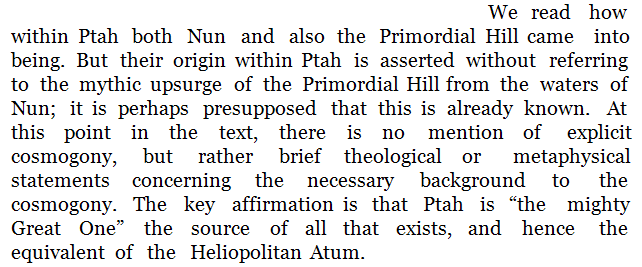 It is thus as the trinity Atum-Horus-Thoth that Ptah sets about the work of creation: