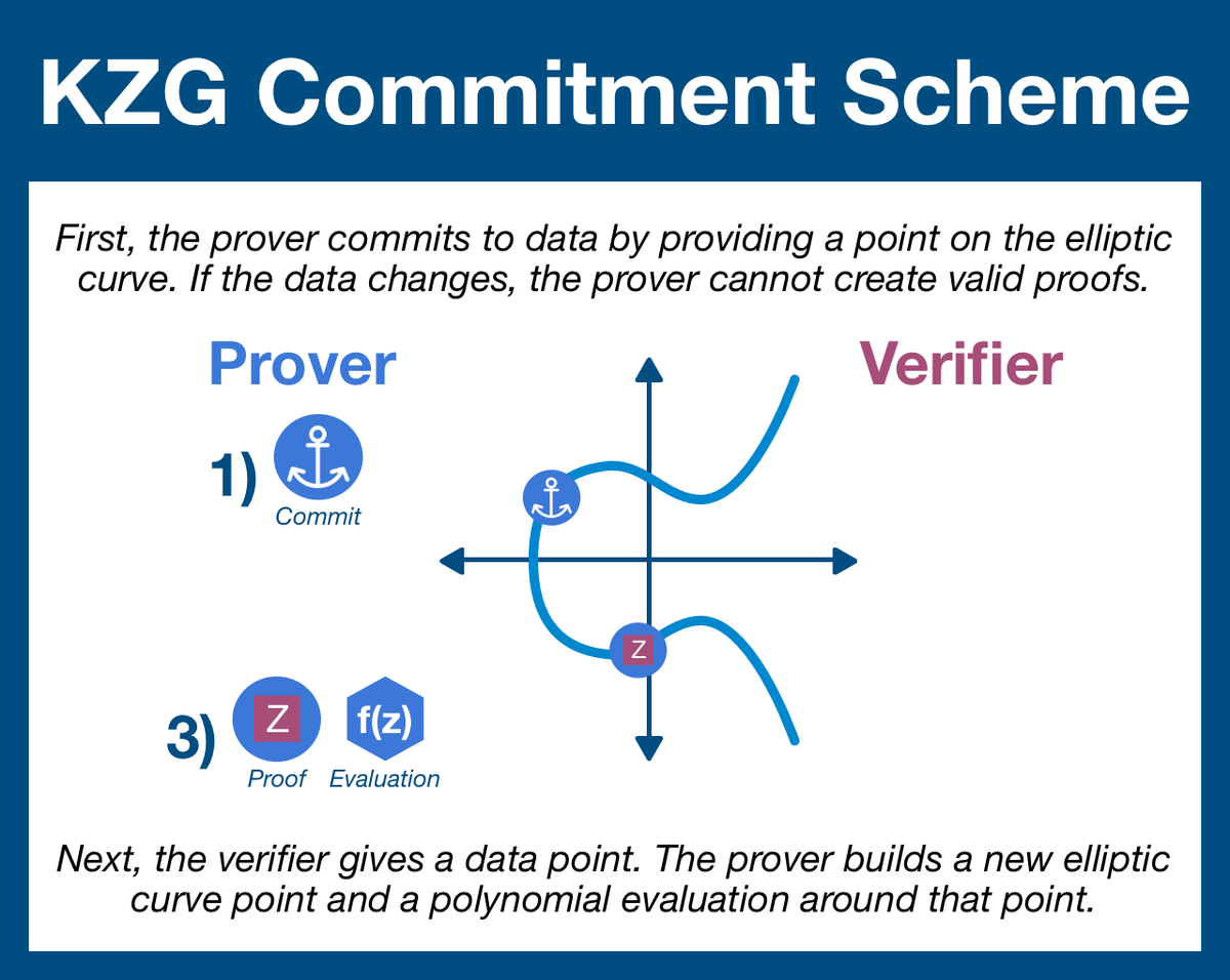 (4/22) KZG commitments use the magic of elliptical curve cryptography to create something special: a commitment that can be checked at ANY position without revealing any other information.