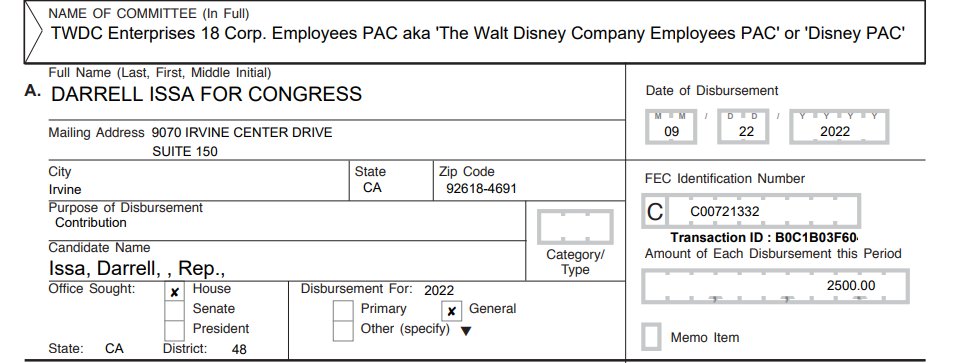 Disney kept the letter of their promise, by not giving until 2022. But 2022 is in the same election cycle as 2021, which means there was no practical impact or actual consequences for Issa and Cline--except that Disney got some good PR.