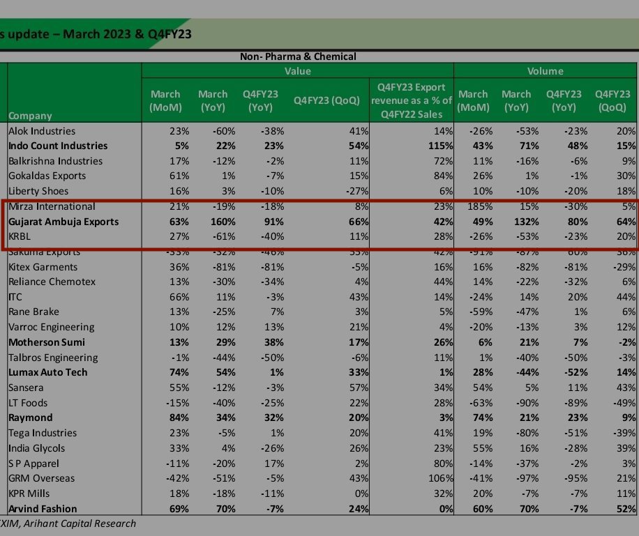 RM has softened. Good for margins, now lets check the exports as published by Arihant capital.