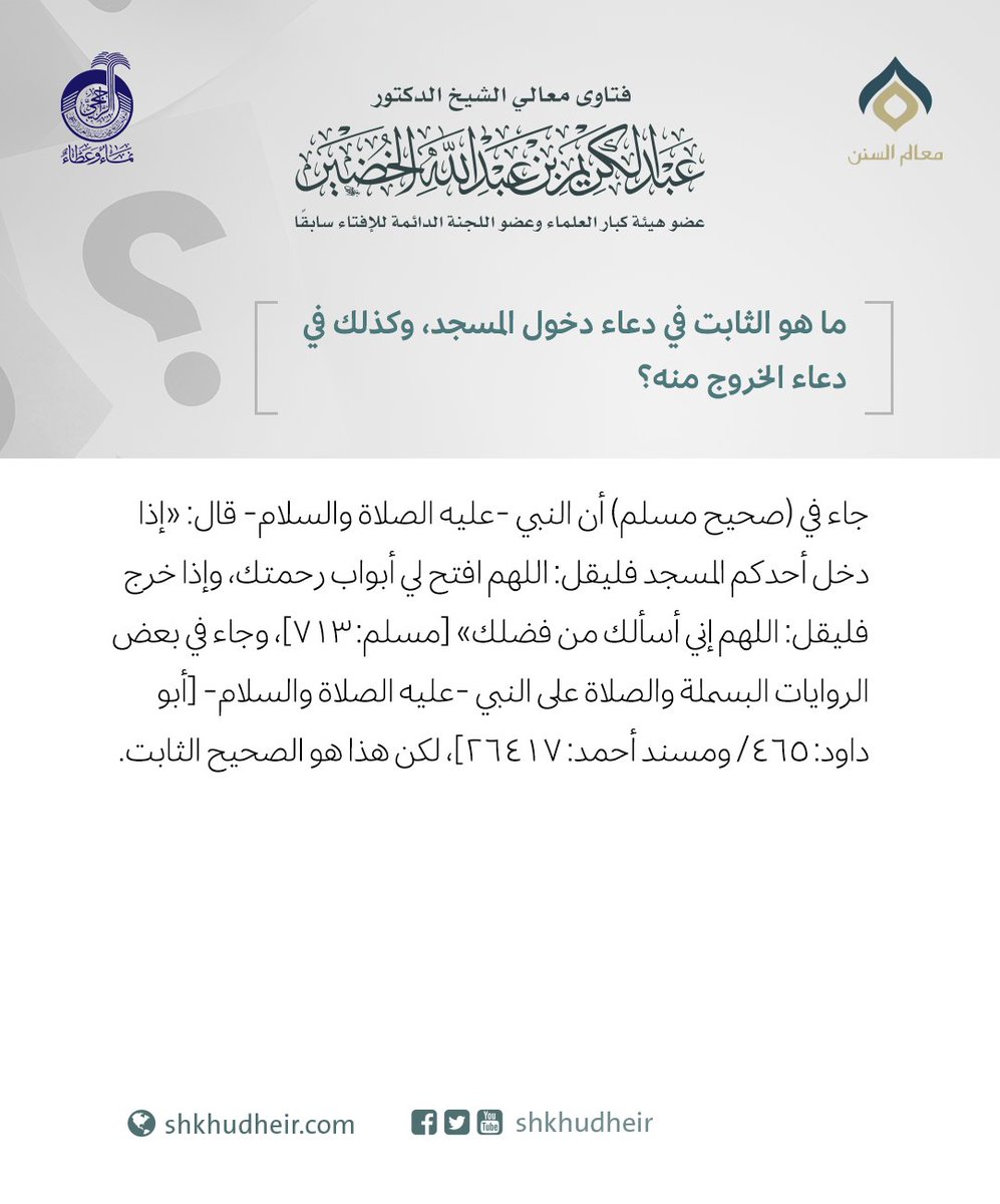 ما هو الثابت في دعاء دخول المسجد، وكذلك في دعاء الخروج منه؟