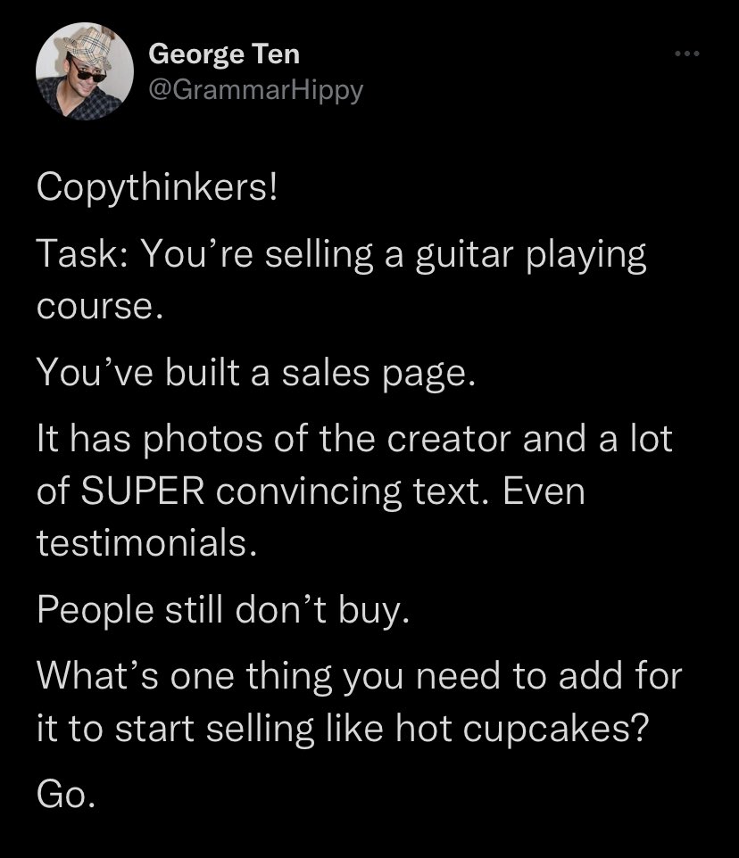 And make sure to follow me @GrammarHippy to never miss our copythinking exercises and threads.