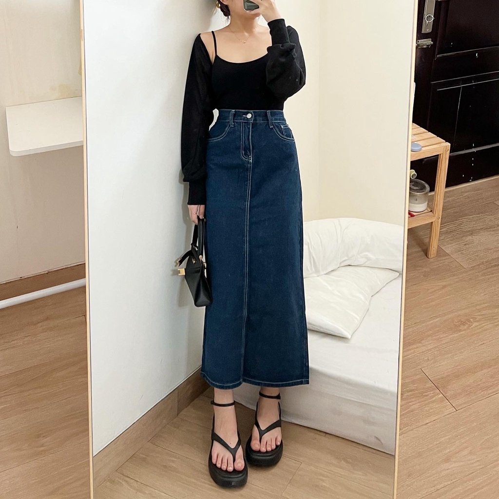 —Mabel Denim Midi Skirt