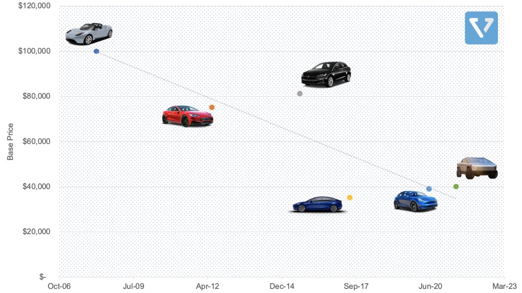 4. Demographic - Tesla's first car was $100k. Now it's $40k.