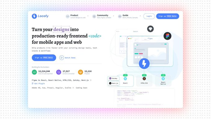 Turn your Figma designs into production-ready frontend code for React, React Native, Nextjs, HTML-CSS, and Gatsby.