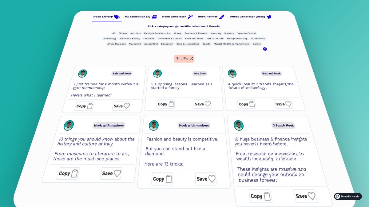 Library of thousands of hooks across 20+ categories. Use these hooks to get started immediately.