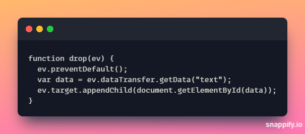 β In the example above, the ondrop attribute calls a function, drop(event).