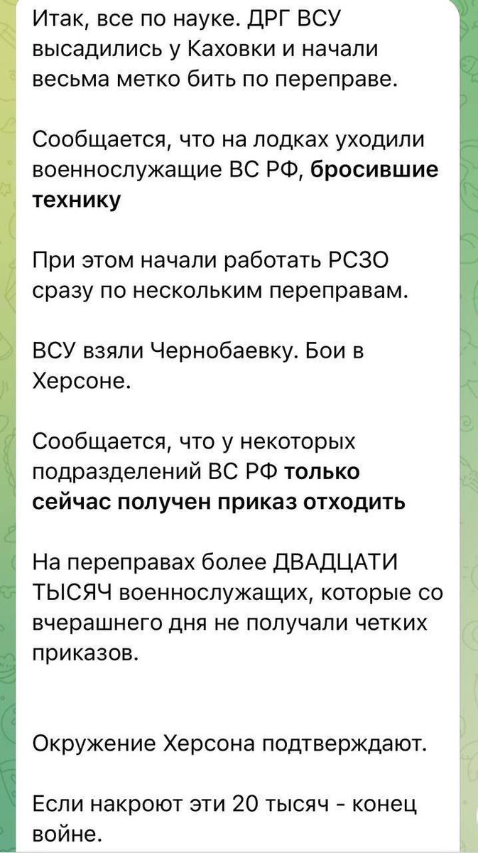 Russian under callsign "Thirteenth" claims most of the troops have already been removed from the right bank of Dnieper.
