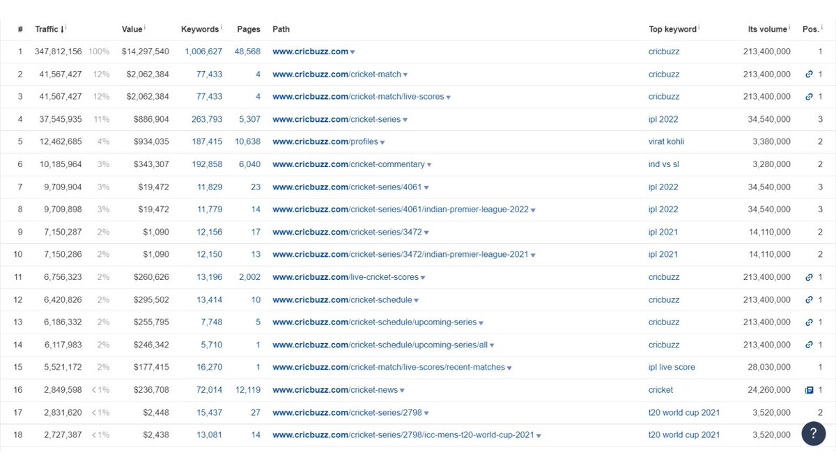 2. Let's look at CricBuzz's SEO numbers