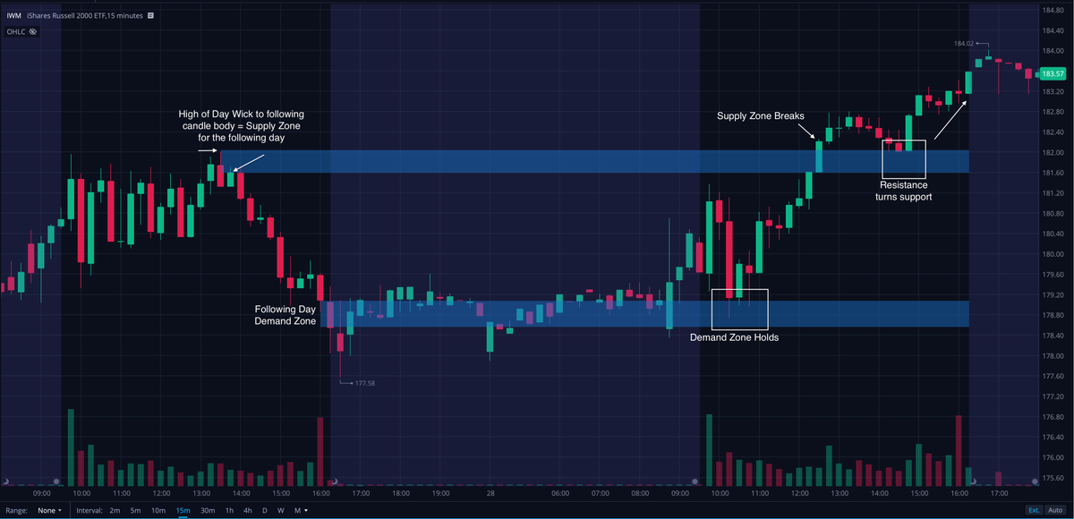 We are going to focus on my favorite ones and in my opinion the most powerful and consistent zones for day trading - The previous day S/D $spy $qqq $iwm