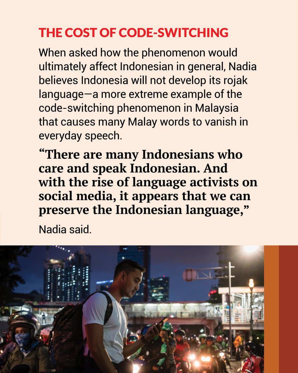 Many South Jakartans occasionally alternate their language between Indonesian and English. We try to find out why