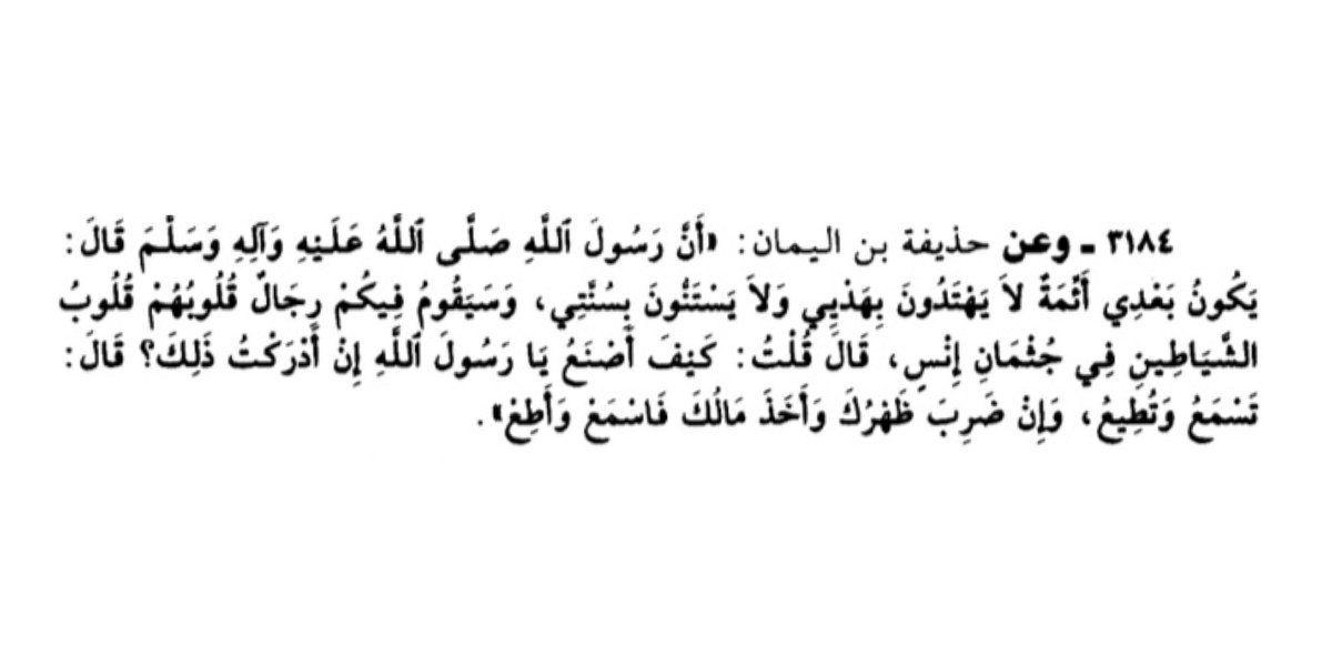 Hudhayfah asked what should he do if he lives to see these worrying incidents. The Prophet ﷺ commanded him to listen and obey the ruler, even if he flogs his back and takes his wealth. وهي وصية لنا جميعاً