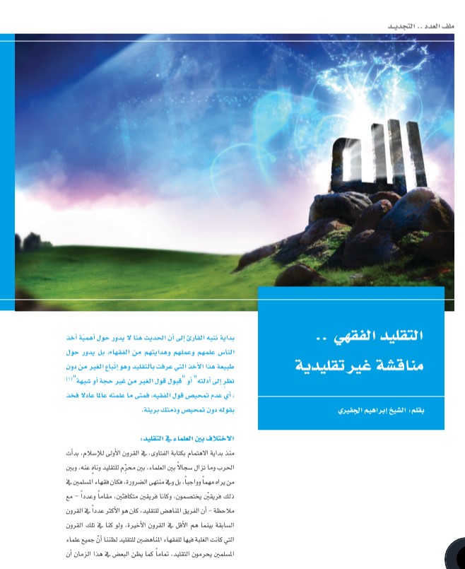 حول مقاله في مجلة التجديد العدد (6) مارس 2010 بعنوان "التقليد الفقهي.. مناقشة غير تقليدية"