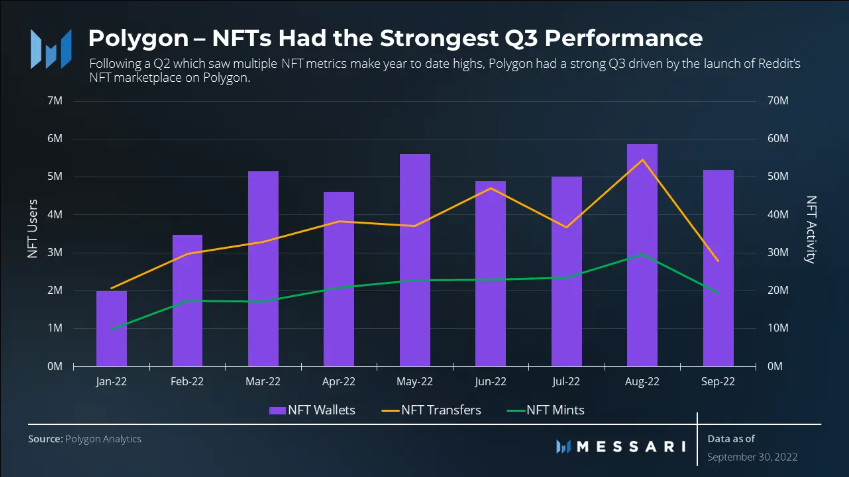 Polygon's NFT surged in Q3 following their partnership with Reddit, Disney, Starbucks, and a few other players.