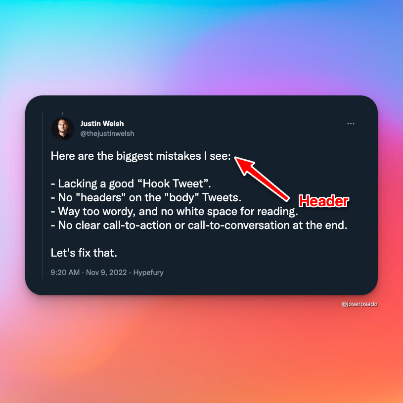 Give your readers a taste of what’s coming up in the next tweet. Ask a question, or say something that triggers your reader’s curiosity.