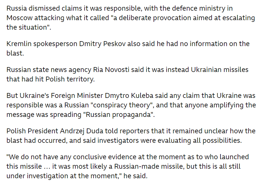 3. An interesting thread mainly because of the absurd comments by Ukrainian and NAFO Trolls who insist that Russia was to blame, even if it was a Ukrainian missile.