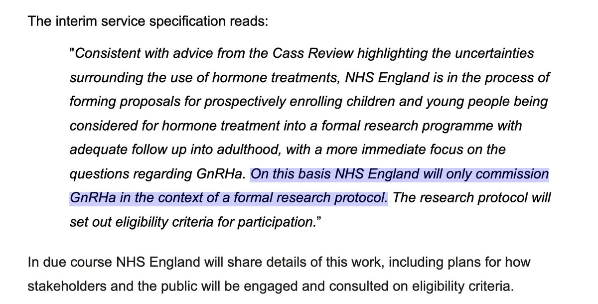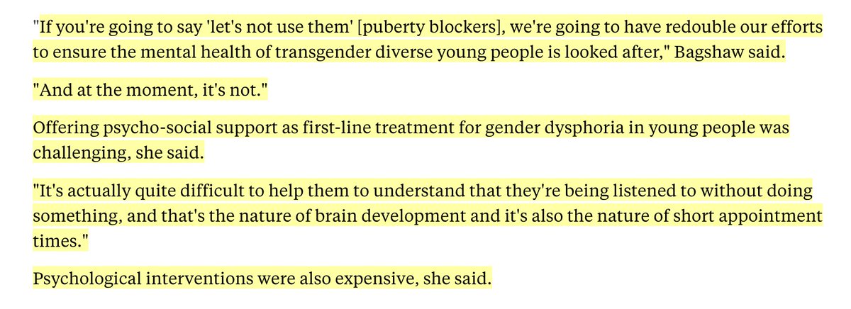 Notably the Times makes the point you can't extrpolate results from studies of blockers for early puberty (7-11) to gender-questioning kids (10-16).