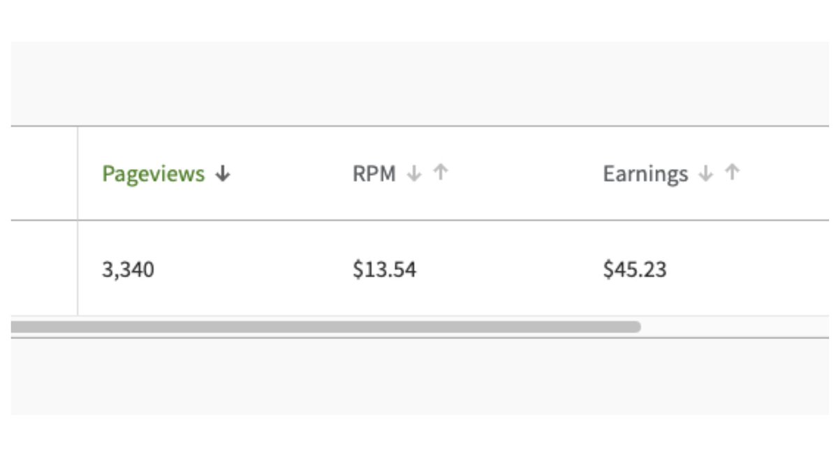 10. I can see that although the RPM is quite low at $13.54, it gets a decent number of views so makes about $45 per month.