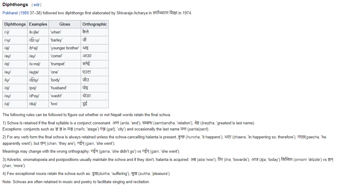 @y_k_s_3 @gaudiya_surya Though I don't necessarily agree with all the dipthongs given there, e.g. /eu̯ʈa/ for एउटा. That's the way it should be formally pronounced, but usually one hears /jʌu̯ʈa/. Sometimes you'll even see it spelled as यौटा.